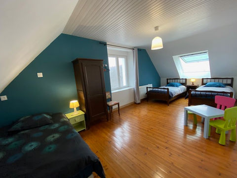 Chambre 3 : Etage avec deux lits 90 x 190 et un lit 120 x 190 - vue mer.
